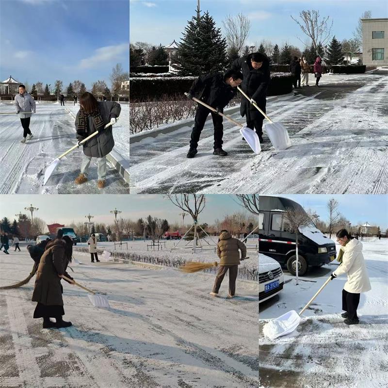 活動中,大家紛紛拿起鐵鍬、除雪鏟和掃帚等工具,分工有序,高效協(xié)作,對公司院內(nèi)、出入口等區(qū)域進行除雪清掃。