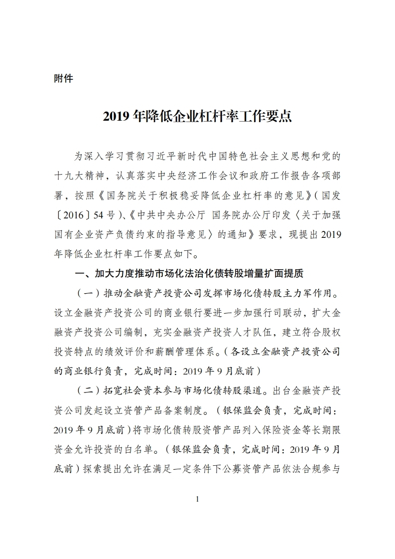 關(guān)于印發(fā)《2019年降低企業(yè)杠桿率工作要點(diǎn)》的通知