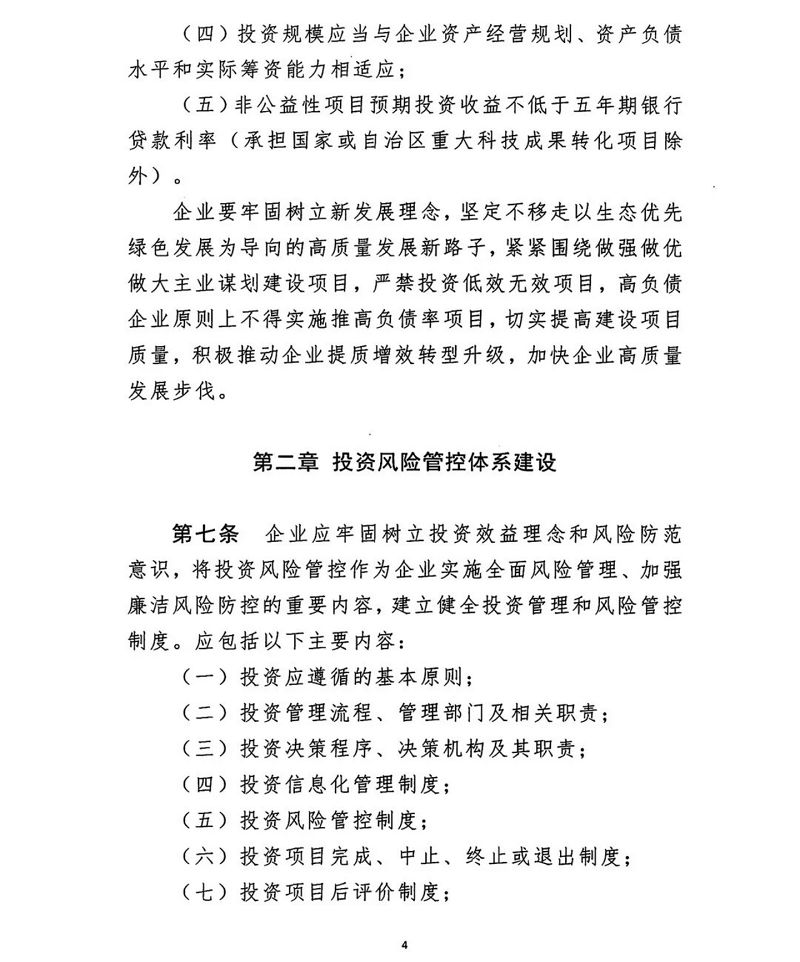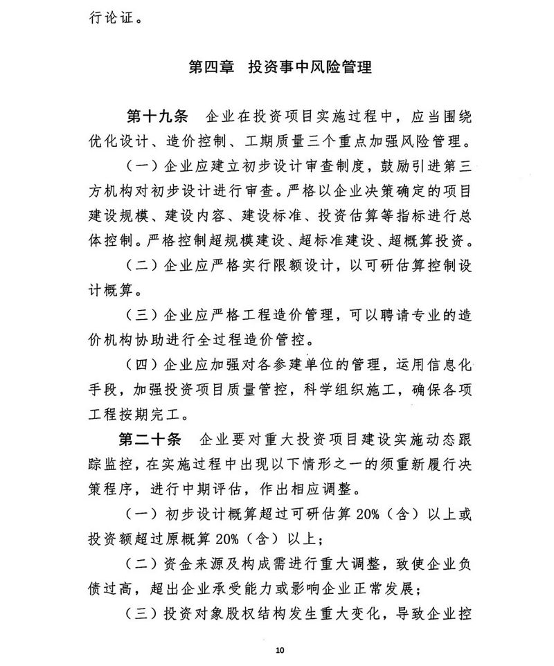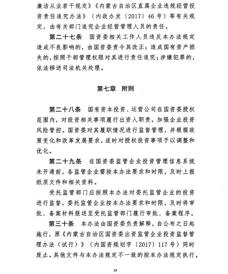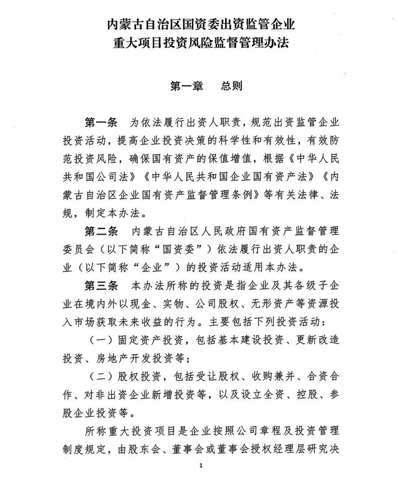 為進(jìn)一步完善投資監管制度,規范企業(yè)投資行為,加強投資風(fēng)險管控,9月26日,自治區國資委印發(fā)了《內蒙古自治區國資委出資監管企業(yè)重大項目投資風(fēng)險監督管理辦法》(內國資發(fā)〔2019〕13號)。